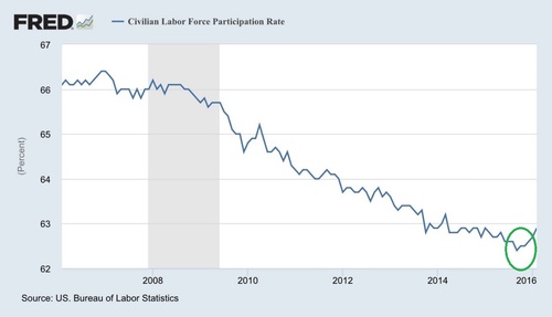 The recent uptick suggests that the improving labor market is encouraging Americans to come off the sidelines. That supports some economists’ contention that there is a large pool of potential workers who aren’t formally part of the labor force right now but who would be willing to work under the right circumstances. [iv]