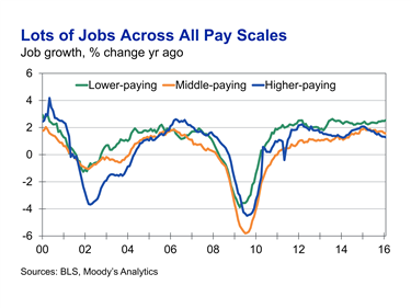 First, job growth is up. Not only are jobs up, but employment is up in all segments of income.