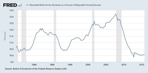 Most certainly consumers have plenty of credit capacity when looking at their debt payments compared to their disposable income. [v]