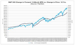 Here’s my final rebuttal to this week’s noise. Over time, stock prices track earnings. Not perfectly. Not in straight lines. But reliably. Geopolitical events, tariff rhetoric, and court rulings create volatility — sometimes sharp, sometimes uncomfortable — but the gravitational force remains forward earnings. (Again, from FactSet)