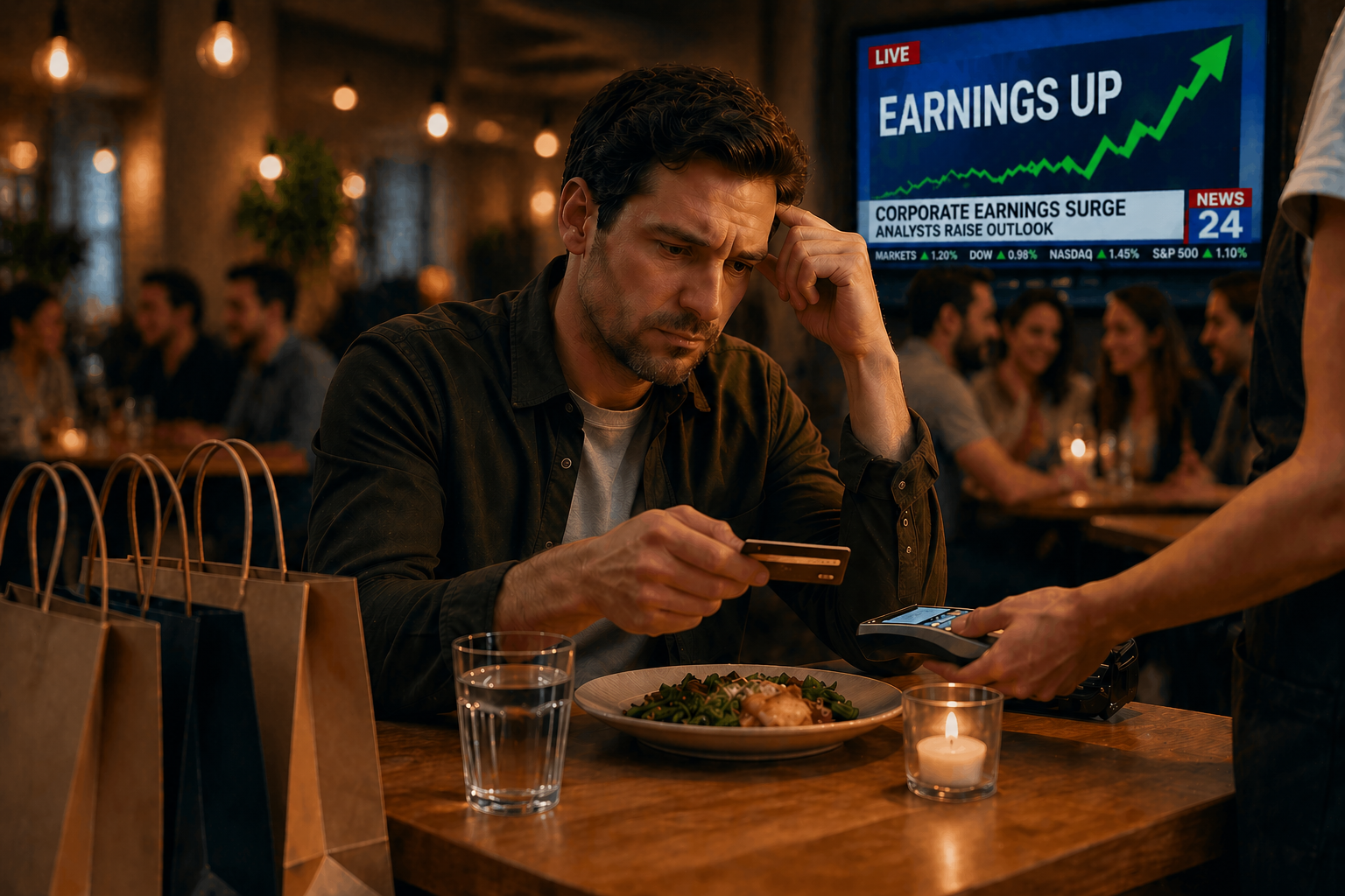 That is the heart of the paradox. Consumers can feel bad and still spend. Spending can remain decent even as gas prices rise. And earnings can keep moving higher while everyone insists the backdrop feels awful.
