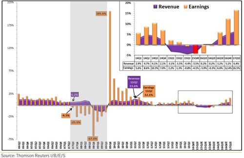The last time we had 4 consecutive quarters of negative earnings growth was Q4 2008 – Q3 2009; the markets hit their bottom on March 9th of 2009, and then rallied up 30% by mid-May and over 60% by the end of the year. [iv]