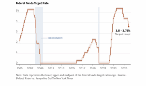 Despite meaningful cuts to short-term rates, the 10-year Treasury yield remains stubbornly high. That’s not a policy mistake. It’s a reminder that the Fed controls the overnight rate — not the entire yield curve.