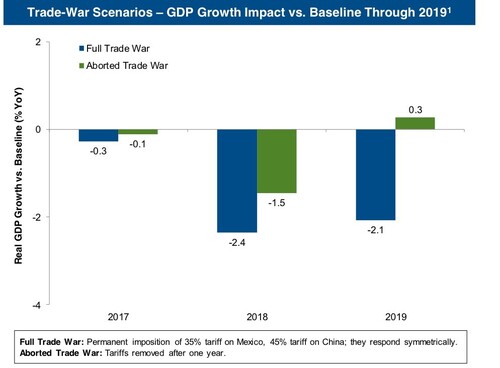 There are certainly significant risks to the recovery in earnings from a Trump Presidency as it relates to trade. If Trump pursues a trade war agenda (per the Petersen Institute for International Economics), we could see over a 2% decline in GDP. [xiii]
