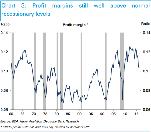 In the turmoil we are currently experiencing, one small fact eludes most market watchers: Profit margins are still well above recessionary levels. If we see any, or all, of the above catalysts materialize, we’ll see some serious revenue drop to the bottom line. [x]