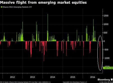 To date, the biggest post-election loser has been the Emerging Markets (E.M.). The E.M. index is down 6.8% since Trump won the election [i].